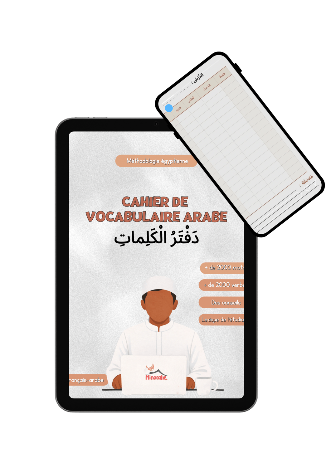 Ce cahier ne vient pas d’une méthode théorique, mais d’une pratique réelle utilisée en Égypte, sur le terrain, fournis pa les instituts aux étudiants en langue arabe.